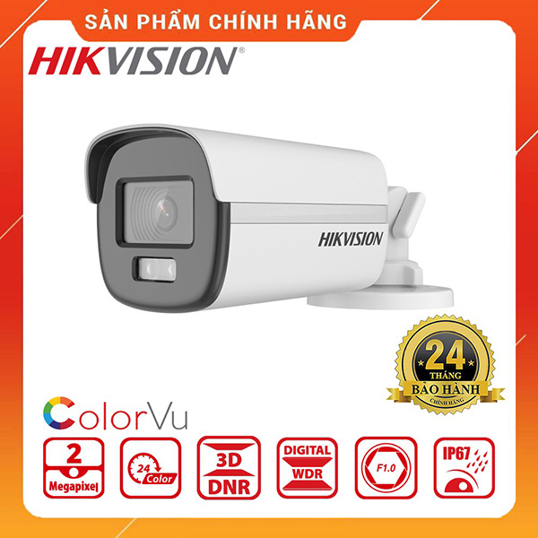 Camera HDTVI ColorVu 2MP HIKVISION DS-2CE10DF0T-F(thân trụ)